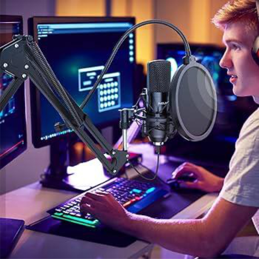 A studio microphone paired with a sound card enables high-quality audio recording and broadcasting by converting analog sound into digital data for PCs, smartphones, and tablets. These setups are ideal for podcasting, music production, live streaming, voice-over work, and gaming, offering features like noise reduction, clear audio capture, and compatibility with popular software for detailed control over sound quality.