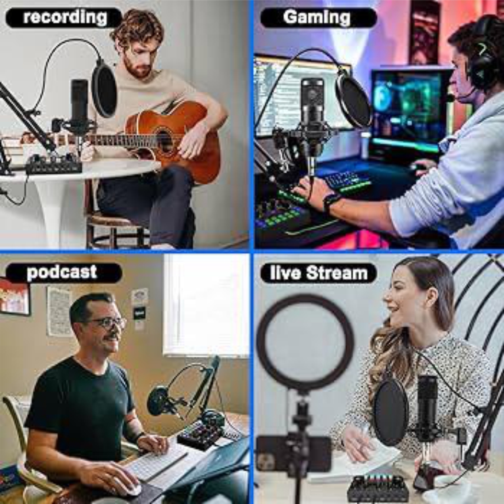Imported dual DSP chip: Built-in dual DSP noise reduction chip enables the condenser microphone to maintain 120 kHz sampling rate and 24 bit rate, ensuring that your voice details are captured in place, bringing emotional sound. Stable and clear, with high sensitivity. This professional streaming microphone is designed for podcasts, streaming, music and short video recording, meeting all your needs.
